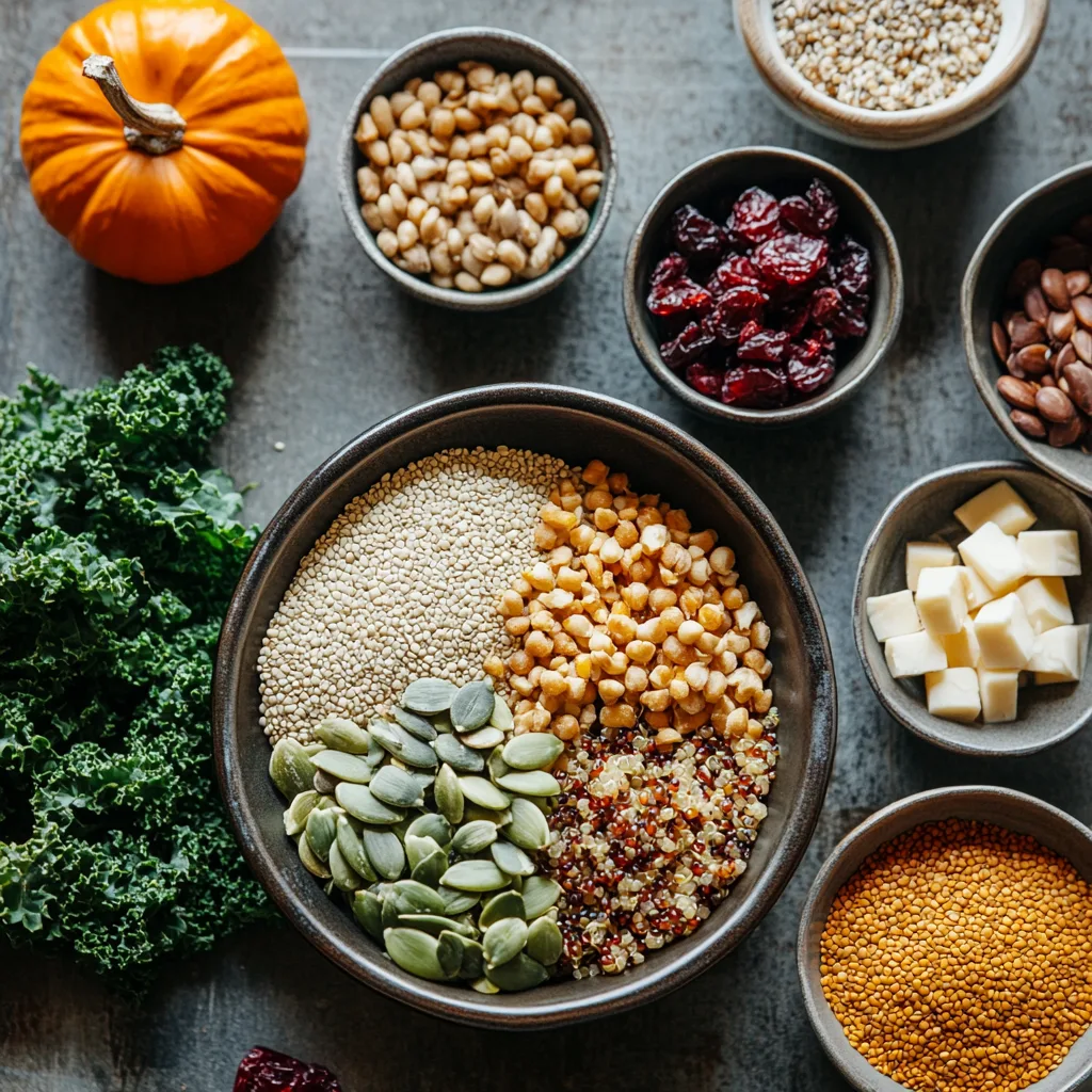 Gathering the right ingredients is half the fun of cooking! For this Autumn Grain Bowl with Roasted Pumpkin Seeds, you’ll need a mix of wholesome staples and vibrant additions. Here’s what you’ll need: