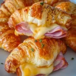 Deliciously flaky croissants filled with smoky ham, creamy cheddar, and a hint of mustard for a comforting meal.