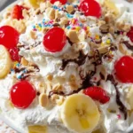 The air turns sweet and warm as you gather the ingredients for a delectable treat that summons memories of carefree summer days and joyous celebrations. There’s something undeniably festive about a Banana Split Fluff Salad. The moment you first dip your spoon into that creamy mixture, you hear a gentle crunch from the nuts, feel the lusciousness of whipped topping melting on your tongue, and savor the cool, sweet fruits bursting with flavor. This vibrant dish invites a sense of nostalgia and happiness, mingling the rich aromas of chocolate and cherries, reminiscent of the classic banana splits enjoyed at ice cream parlors on sunny afternoons.