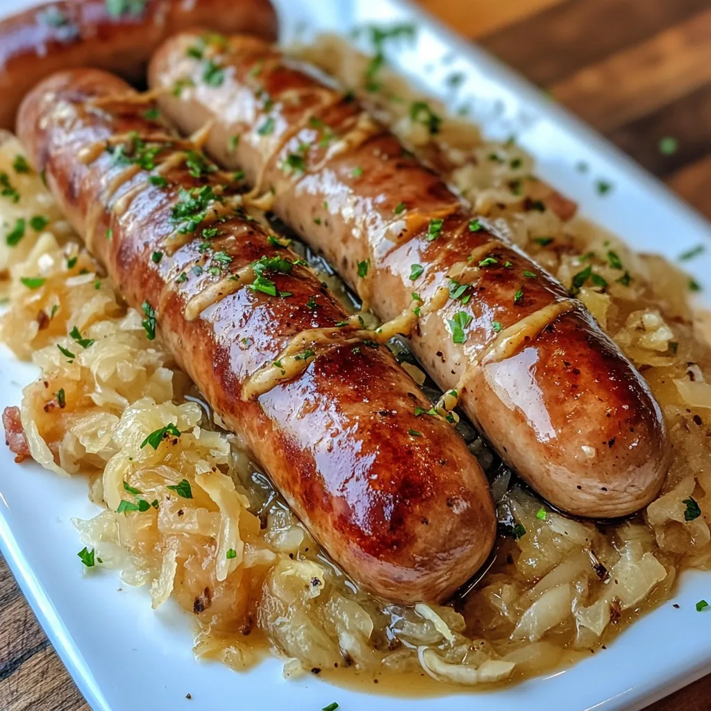 Keywords: Beer-Brined Bratwurst, Sauerkraut, German Cuisine, Grilled Sausages