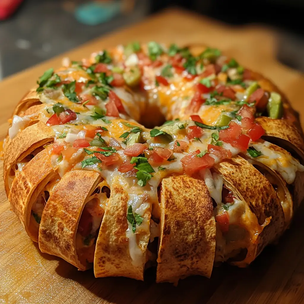 A delicious and visually stunning quesadilla ring filled with cheese and your choice of toppings, perfect for parties or family gatherings.