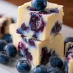 A creamy and luscious blueberry fudge that combines the sweetness of white chocolate with the tartness of fresh blueberries, creating a delightful treat for any occasion.