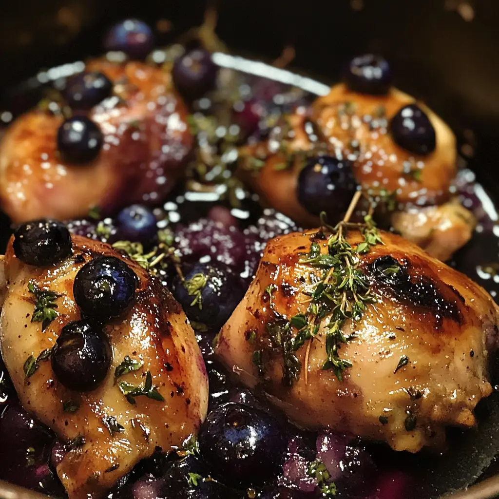 Cooking should be a joyful experience, and my Blueberry Thyme Chicken embodies that spirit. The sweet and savory dance of flavors brings a smile to my face every time I serve it. It’s not just a meal; it’s a moment of connection with family and friends. Whether you’re celebrating a special occasion or simply enjoying a weeknight dinner, this dish is sure to impress. I hope you find as much joy in making it as I do. So roll up your sleeves, embrace the process, and savor every delicious bite of this unique culinary creation!
