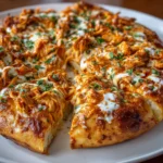 This Bold Buffalo Chicken Pizza features a crispy, golden crust topped with tender, spicy buffalo chicken, creamy ranch dressing, and a blend of melted cheeses. Each bite delivers a delightful crunch followed by a burst of zesty flavor that dances on your palate, making it an irresistible choice for pizza lovers.