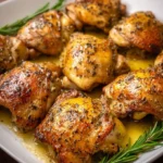 Enjoy tender and juicy bone-in baked chicken thighs, crispy on the outside and bursting with flavor, served with rich gravy and your favorite sides.