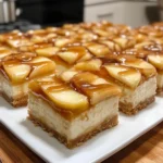 Delicious caramel apple cheesecake bars that combine the flavors of creamy cheesecake, sweet caramel, and tart apples for a delightful dessert.