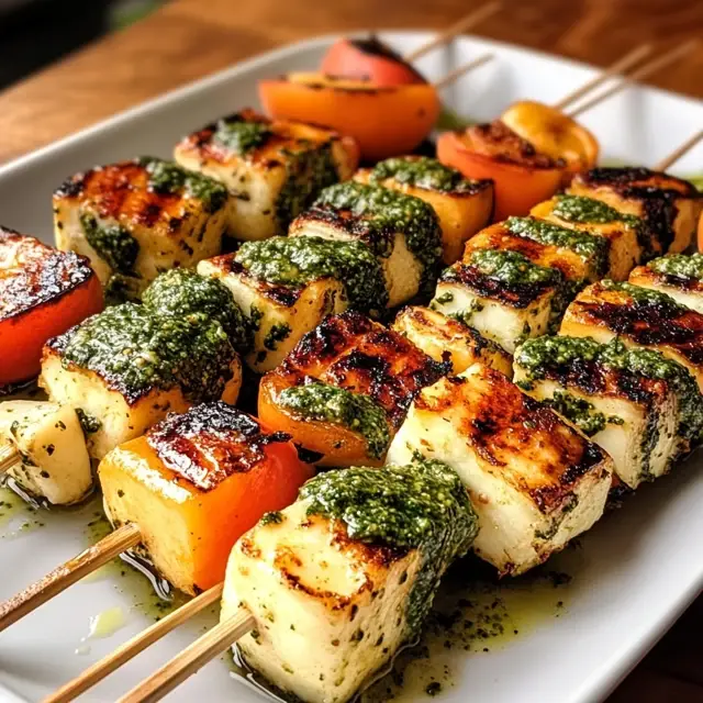 Grilled Peach and Halloumi Skewers with Basil Pesto Delight Your Taste Buds!
