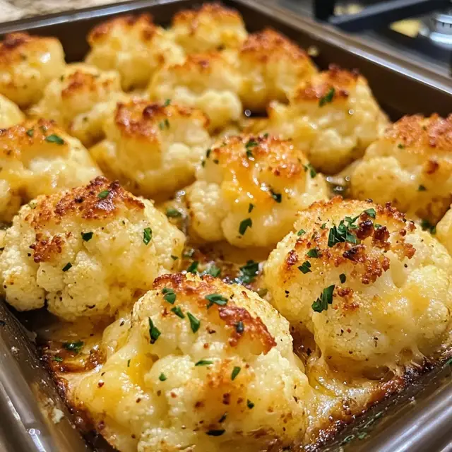 A delicious and healthy snack made with cauliflower and cheese, baked to perfection.