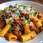 Keywords: Cheesy Beef Rigatoni Bake, Italian comfort food, pasta bake, cheesy pasta, ground beef recipes, family dinner, easy casserole, baked rigatoni, creamy pasta dish, hearty meals, weeknight dinner, Italian-American cuisine, cheesy recipes