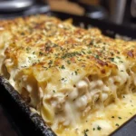 Now comes the fun part—assembling the rolls! Spread a thin layer of Alfredo sauce on the bottom of your baking dish. Take a lasagna noodle, place a generous amount of the chicken mixture on it, and roll it up tightly. Place the rolled noodles seam-side down in the dish. Repeat until all the noodles are filled. Don’t worry if they’re not perfect; they’ll still taste amazing!
