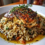 A comforting and hearty dish featuring tender chicken and wild rice, perfect for a family dinner.