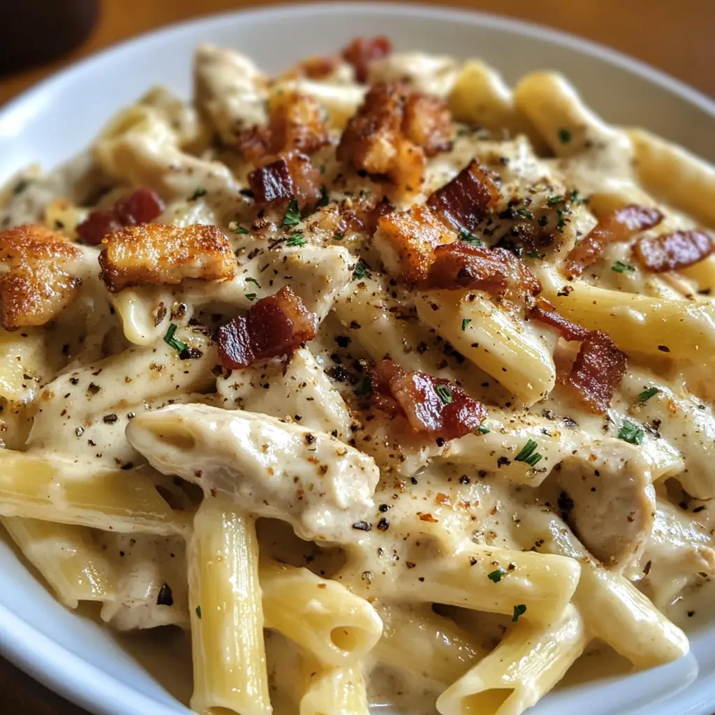 A creamy and delicious pasta dish featuring chicken, bacon, and ranch dressing, perfect for a quick weeknight dinner.