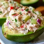 Imagine sinking your fork into the luscious flesh of the avocado, effortlessly scooping through the buttery green goodness. The chicken salad cradles itself within the hollowed-out avocado halves, a picture-perfect presentation that evokes a sense of wholesome indulgence. Whether you’re preparing a leisurely brunch, a family dinner, or a picnic in the park, this dish hangs its hat on versatility, inviting you to enjoy it in any setting. Each bite wraps you in comfort and nourishment, providing both satisfaction and joy.