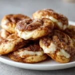 Cinnamon Roll Cheesecake Cookies are a delightful combination of soft, chewy cookies filled with a creamy cheesecake center and topped with a sweet cinnamon swirl.