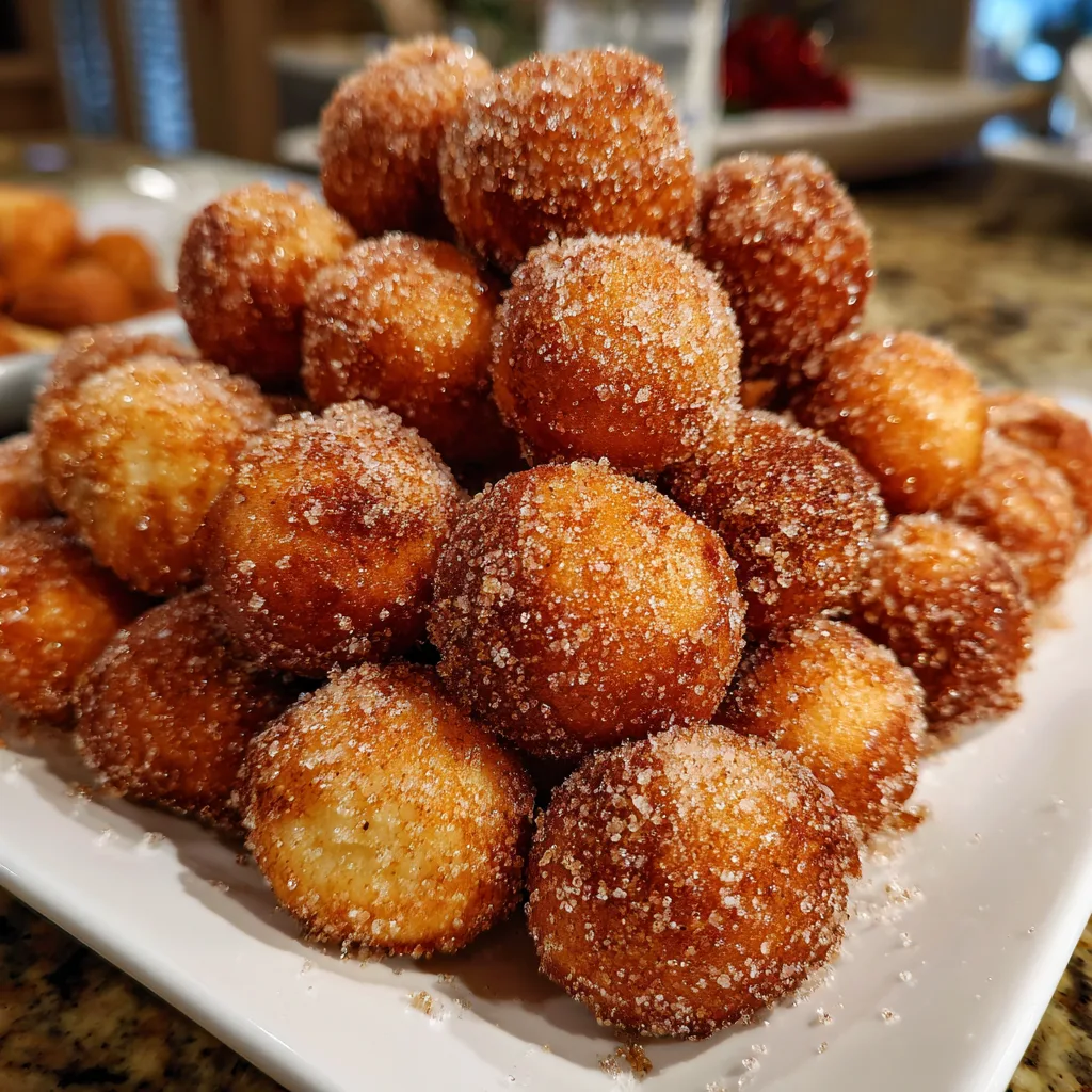 Cinnamon Sugar Donut Holes are bite-sized treats coated in a sweet cinnamon sugar mixture, perfect for satisfying your sweet tooth.