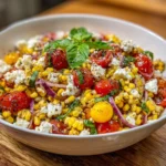 “Corn, Tomato, and Feta Salad: A Juicy, Creamy Delight!”