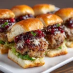 Keywords: Cranberry Sauce Meatball Sliders, meatball sliders, cranberry sauce, party appetizers, easy sliders, holiday recipes, savory snacks, ground beef recipes, slider buns, festive food