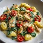 Imagine a dish where creamy sauce envelops tender chicken and pillowy gnocchi, creating a symphony of flavors that dance on your palate. The moment you take a bite, the velvety texture of the sauce coats your tongue, while the soft gnocchi provides a delightful contrast. Each mouthful is a warm embrace, infused with the aromatic notes of garlic and fresh herbs, making it impossible to resist.