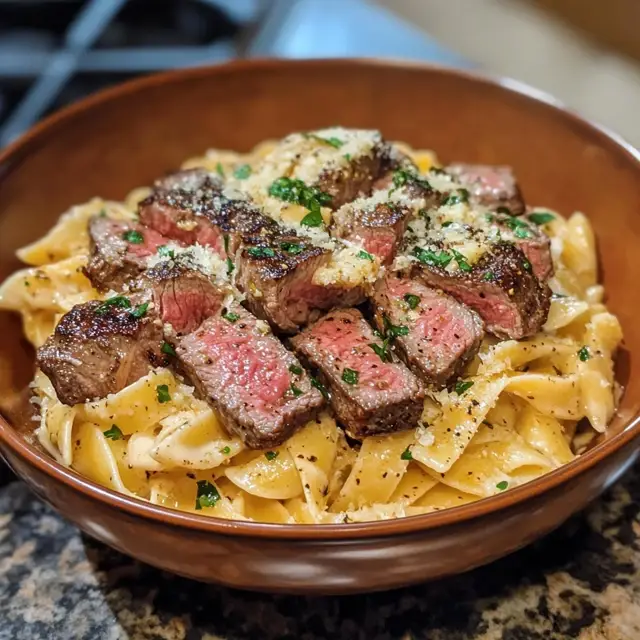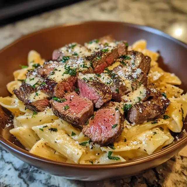 Slice the rested steak into thin strips. Add it to the creamy sauce along with the cooked pasta. Toss everything together until the pasta is well coated. This is where the flavors meld together, creating a delightful dish that’s hard to resist!