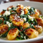 The combination of textures—the crispy gnocchi, the tender spinach, and the creamy feta—creates a symphony of flavors that brings comfort and joy. It’s a dish that wraps you in a warm hug, perfect for those busy weeknights when you need a quick yet satisfying meal, or for casual gatherings with friends where you want to impress without the fuss. Whether served as a main course or a delightful side dish, this recipe is sure to become a cherished favorite in your home.