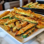 Crispy Zucchini Parmesan Fries are a delicious and healthy snack option that combines the flavors of zucchini and Parmesan cheese, baked to perfection for a crunchy texture.