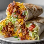 The Crunchy Bacon Ranch Wrap is a delightful fusion of crispy bacon and creamy ranch dressing, enveloped in a soft tortilla. Each bite offers a satisfying crunch from fresh vegetables, balanced by the rich, savory flavors of the bacon and the tangy ranch, creating a mouthwatering experience that is both refreshing and indulgent.