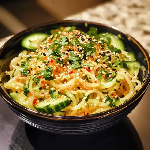 This Cucumber Noodle Salad is a game-changer for anyone juggling a busy lifestyle. It’s incredibly easy to prepare, taking just 15 minutes from start to finish. The fresh flavors burst in your mouth, making it a delightful treat on warm days. Plus, it’s versatile! You can enjoy it as a light meal or a refreshing side dish. Trust me, once you try it, you’ll be hooked!