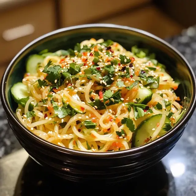 Creating a Cucumber Noodle Salad is more than just preparing a meal; it’s about embracing freshness and simplicity in our busy lives. This salad brings joy with every crunchy bite, reminding us that healthy eating doesn’t have to be complicated. Whether you’re serving it at a family gathering or enjoying it solo, the vibrant colors and flavors will brighten your day. I hope this recipe inspires you to explore new culinary adventures and share delightful moments around the table. So grab those cucumbers and let the salad-making fun begin!