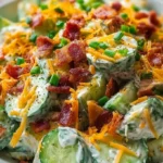 A vibrant and refreshing salad with crisp cucumbers, smoky bacon, and creamy ranch dressing that elevates any gathering.
