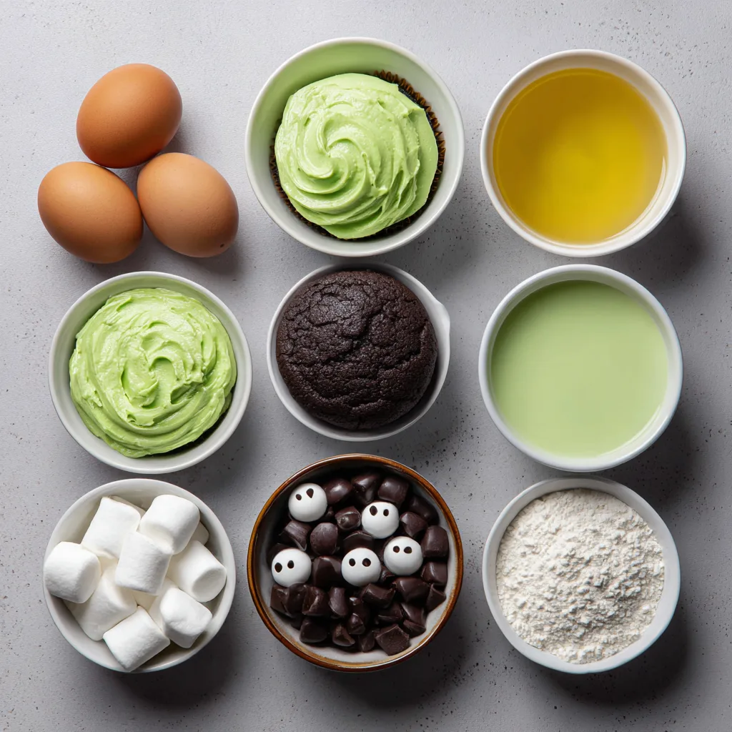 Ingredients for Frankenstein Monster Cupcakes