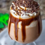 A decadent frozen cocktail blending Irish whiskey, Baileys Irish cream, and vanilla ice cream, drizzled with chocolate syrup.