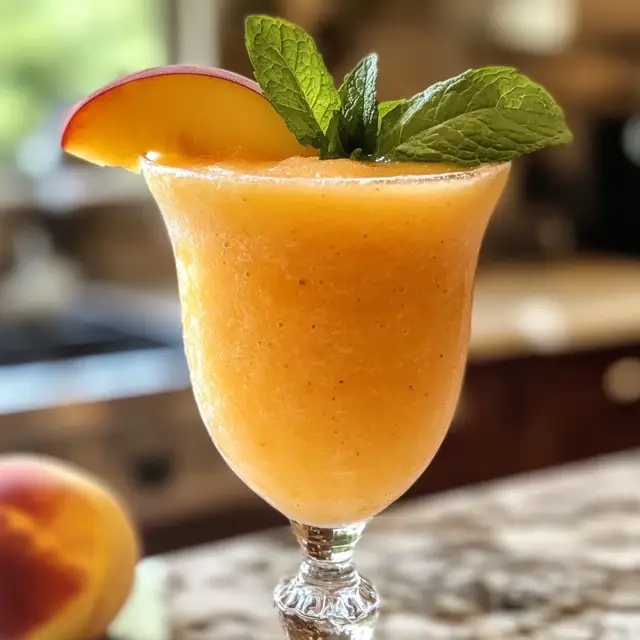 Frozen Peach Bellini with Fresh Mint for a Refreshing Twist