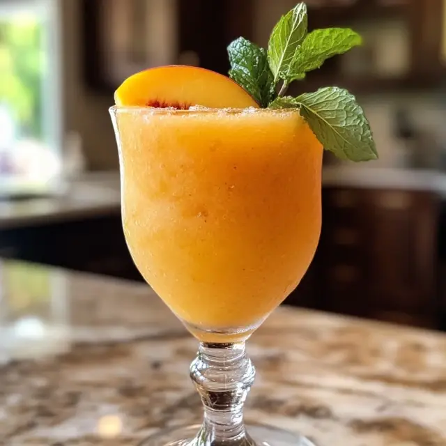 This Frozen Peach Bellini with Fresh Mint is a game-changer for busy moms and professionals alike. It’s incredibly easy to whip up, taking just 10 minutes from start to finish. The taste? Oh, it’s like a summer vacation in a glass! The combination of sweet peaches and refreshing mint creates a delightful flavor explosion. Plus, it’s a crowd-pleaser, making it perfect for any gathering or a simple evening treat.