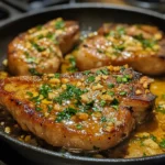 After the pork chops are beautifully seared, reduce the heat to medium. Now, it’s time to add the butter and minced garlic to the skillet. As the butter melts, spoon it over the chops for about 2 minutes. This step infuses the meat with rich garlic flavor, making it irresistible!