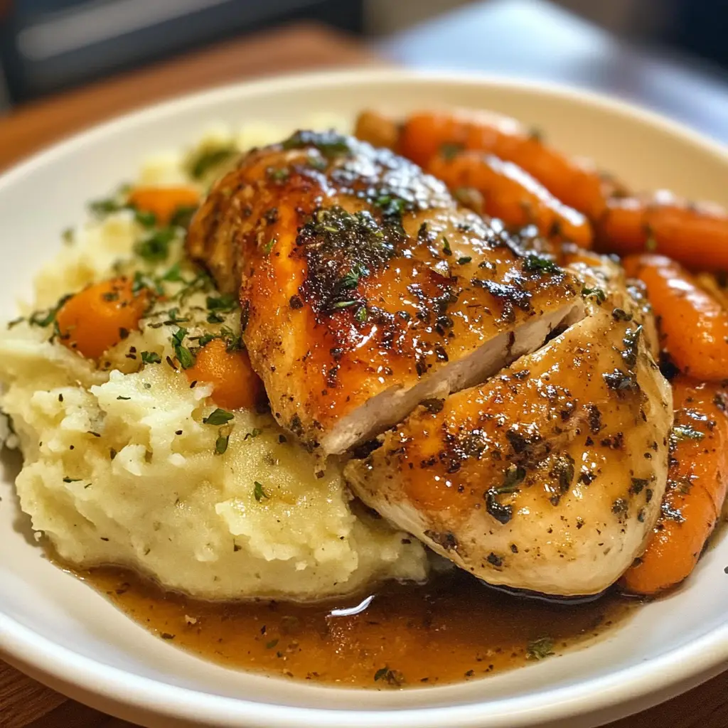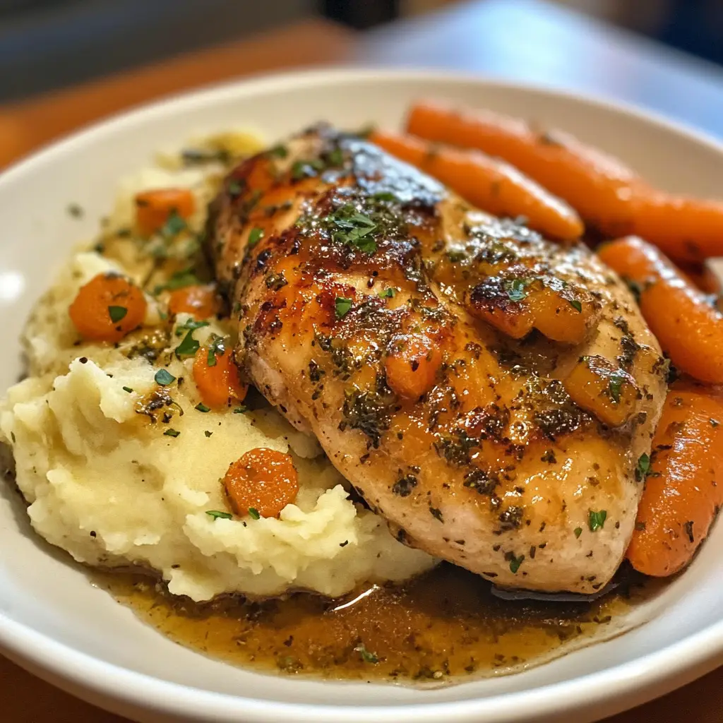 Keywords: Garlic Herb Chicken, Mashed Potatoes, Glazed Carrots, Comfort Food