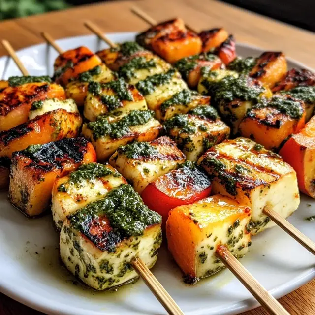 Creating these Grilled Peach and Halloumi Skewers with Basil Pesto is more than just cooking; it’s about bringing joy to your table. The sweet, smoky peaches paired with the savory halloumi create a delightful harmony that’s hard to resist. Plus, the vibrant basil pesto adds a fresh twist that elevates the entire dish. Whether you’re hosting friends or enjoying a quiet family dinner, this recipe is sure to impress. It’s a simple yet elegant way to celebrate the flavors of summer, making every bite a little moment of happiness. Trust me, you’ll want to make this again and again!