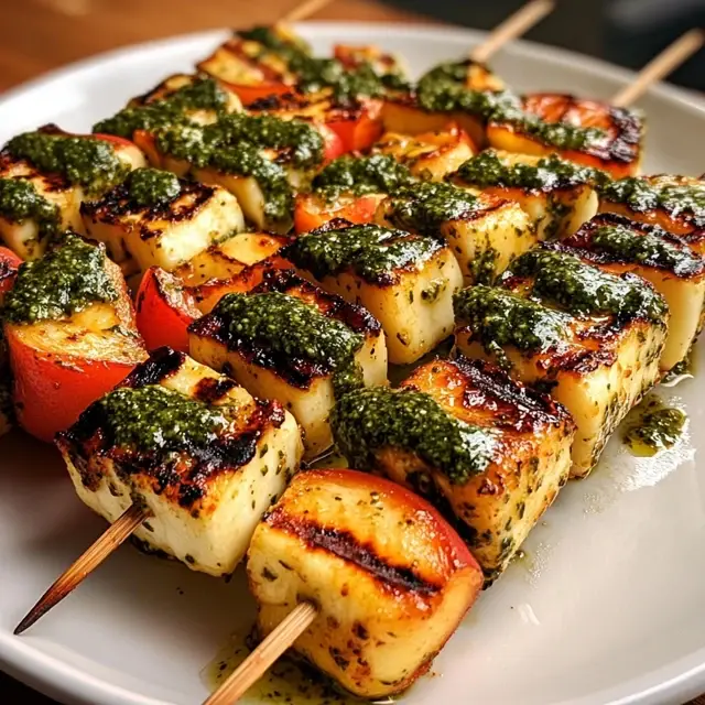 Why You’ll Love This Grilled Peach and Halloumi Skewers with Basil Pesto