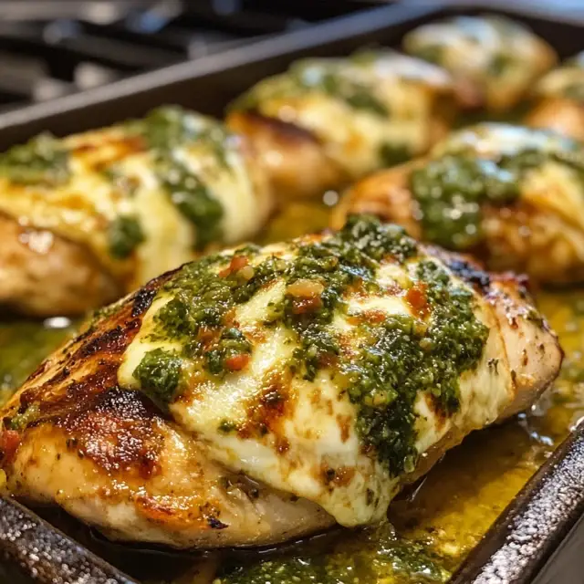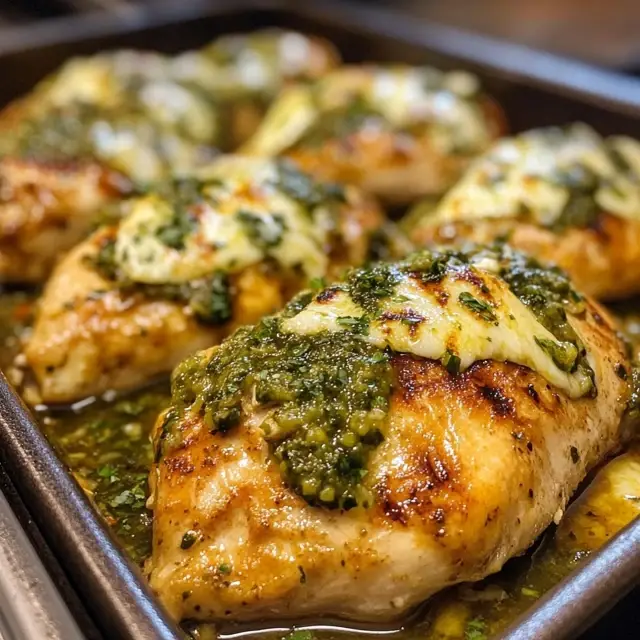 A delicious grilled chicken dish topped with zesty salsa verde and melted pepper jack cheese, perfect for impressing guests.