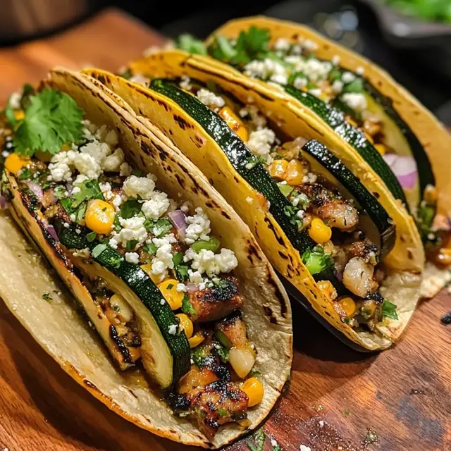 Delicious grilled zucchini and corn tacos that are perfect for a summer meal.