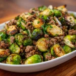 Keywords: Ground Beef, Brussels Sprouts, Sautéed Beef, Healthy Dinner, Quick Meal, Comfort Food, Easy Recipe, One-Pan Meal, Family Dinner, Low-Carb, Gluten-Free, Savory Dish, Protein-Packed, Vegetable Side, Weeknight Dinner