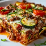 This Guilt-Free Zucchini Pizza Casserole combines the rich flavors of pizza with a healthy twist, featuring layers of zucchini, ground meat, and melty cheese.