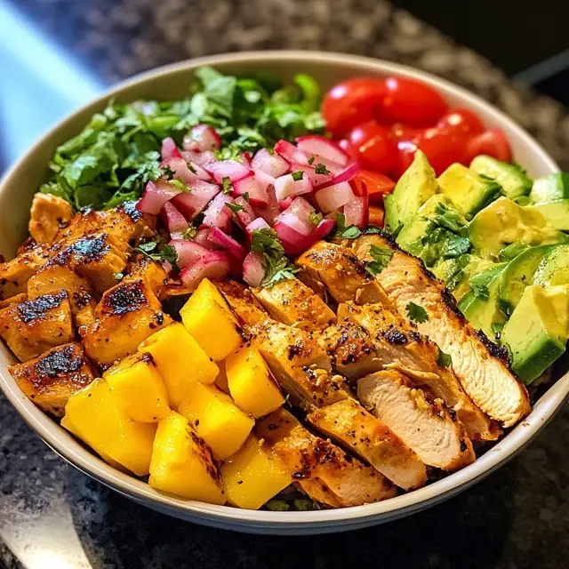 A refreshing and flavorful Hawaiian Chicken Salad Bowl that combines grilled chicken, tropical fruits, and a zesty dressing for a perfect meal.