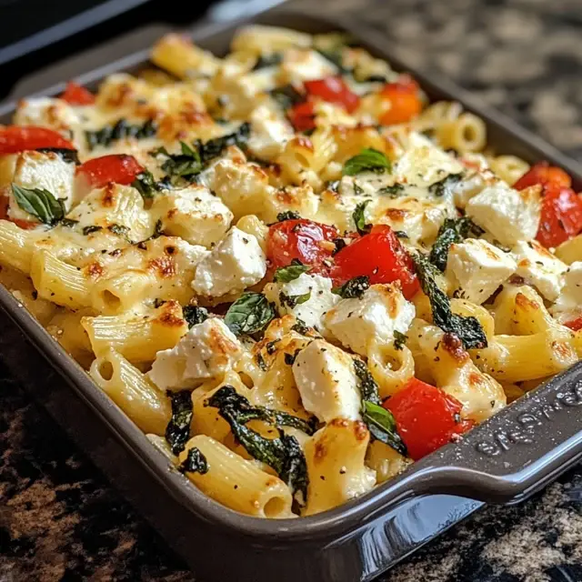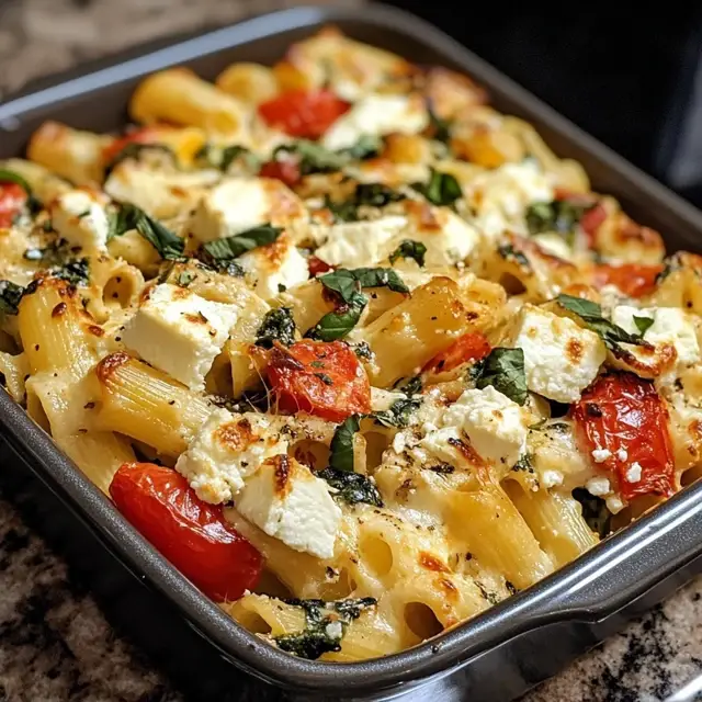 A delicious and nutritious baked feta pasta dish loaded with fresh vegetables, perfect for a healthy meal.