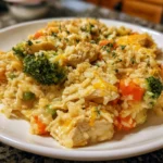 Health Benefits: This casserole is rich in protein from chicken, fiber from brown rice, and vitamins from vegetables, making it a nutritious choice for a balanced meal.