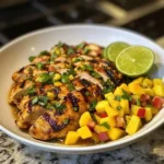 A delicious and refreshing dish featuring grilled chicken marinated in honey and lime, topped with a vibrant mango salsa.