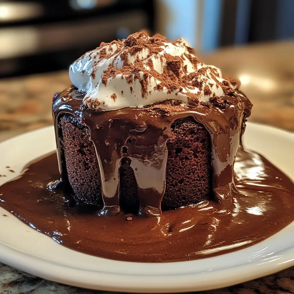 Once your cake is ready, it’s time to make it even more delightful! Top it with mini marshmallows for that classic hot cocoa vibe. You can also sprinkle some chocolate chips or a drizzle of caramel if you’re feeling fancy. Serve it warm, and enjoy every gooey, chocolatey bite!