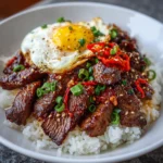 Keywords: Korean BBQ, Steak Rice Bowls, Spicy Cream Sauce, Asian Cuisine, Grilled Steak, Comfort Food, Quick Dinner, Easy Recipe, Fluffy Rice, Marinated Steak, Flavorful Sauce, Gluten-Free Option, Meal Prep, Savory Dish