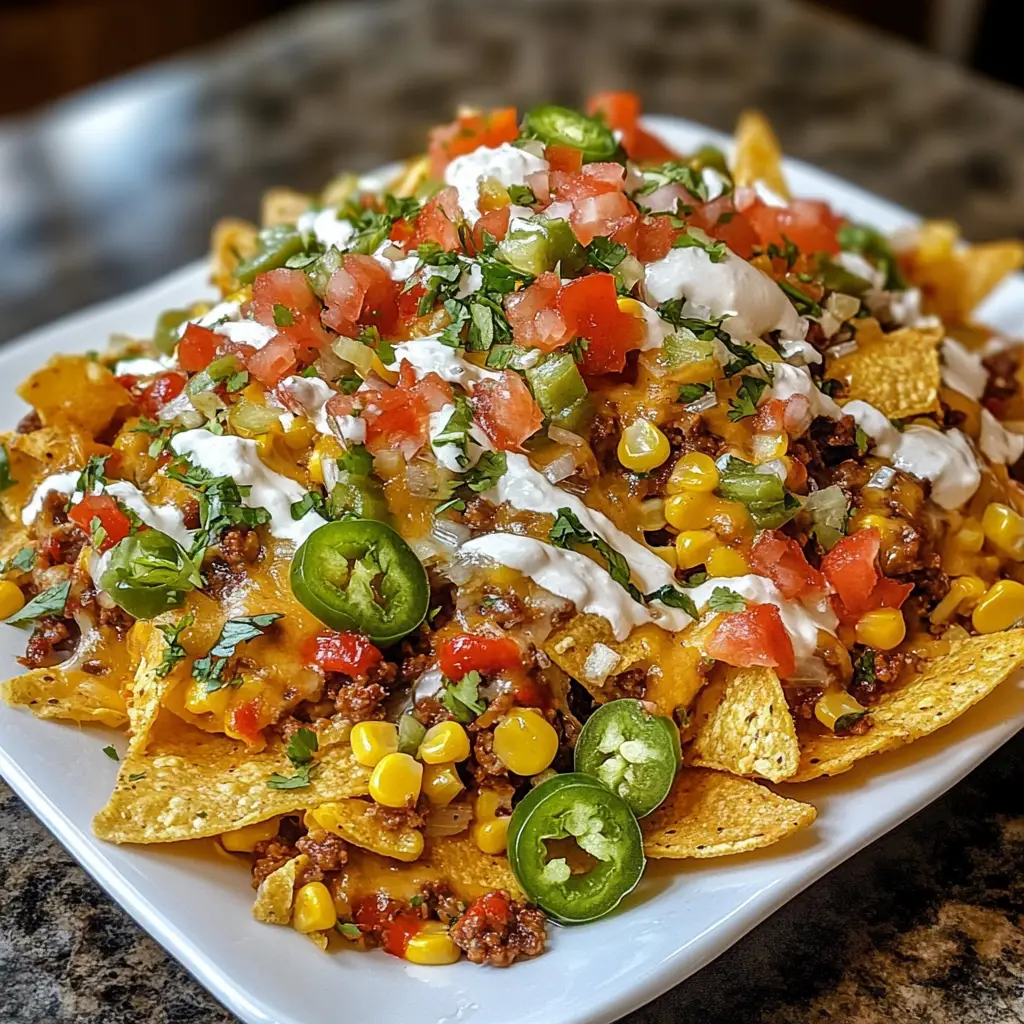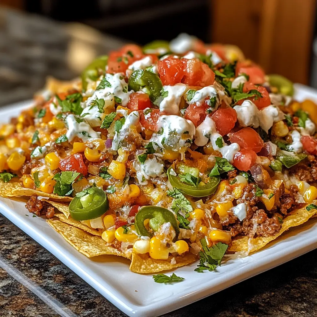 Loaded Street Corn Nachos are a delicious and vibrant dish that combines the flavors of street corn with crispy nachos, topped with a variety of fresh ingredients.