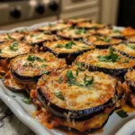 Once your eggplant is baked, it’s time to layer! In a baking dish, start with half of the baked eggplant slices. Then, pour half of the marinara sauce over them, followed by half of the shredded mozzarella cheese. Repeat this process with the remaining ingredients. The layers create a beautiful, hearty casserole that’s bursting with flavor!