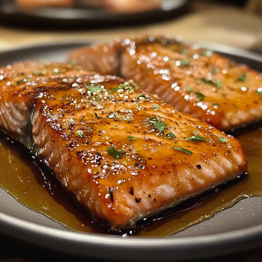 - Pour the maple glaze over the salmon, ensuring it is well coated.